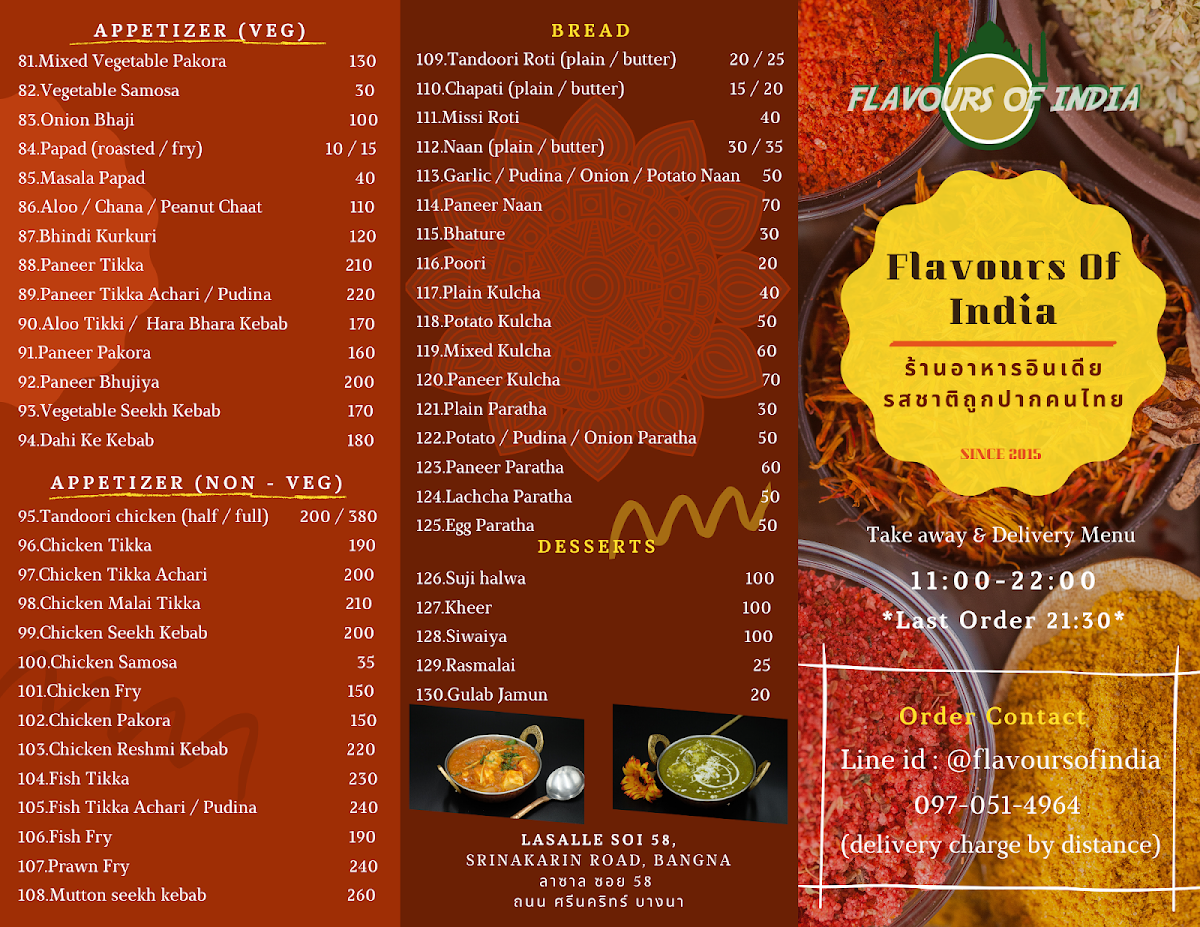 Welcome to Flavours Of India, your go-to destination for authentic Indian cuisine nestled in the heart of Bangkok. This delightful restaurant specializes in Halal and vegetarian options, making it a favorite among diverse diners. Located at 84 Soi Lasalle 58, the ambiance is both welcoming and relaxed, perfect for family gatherings or casual meals.